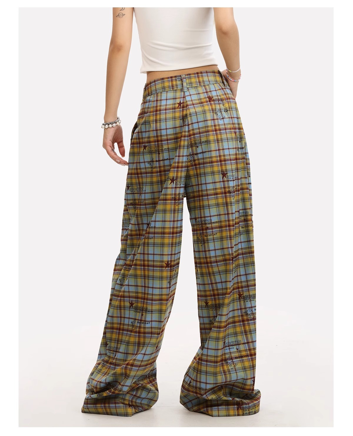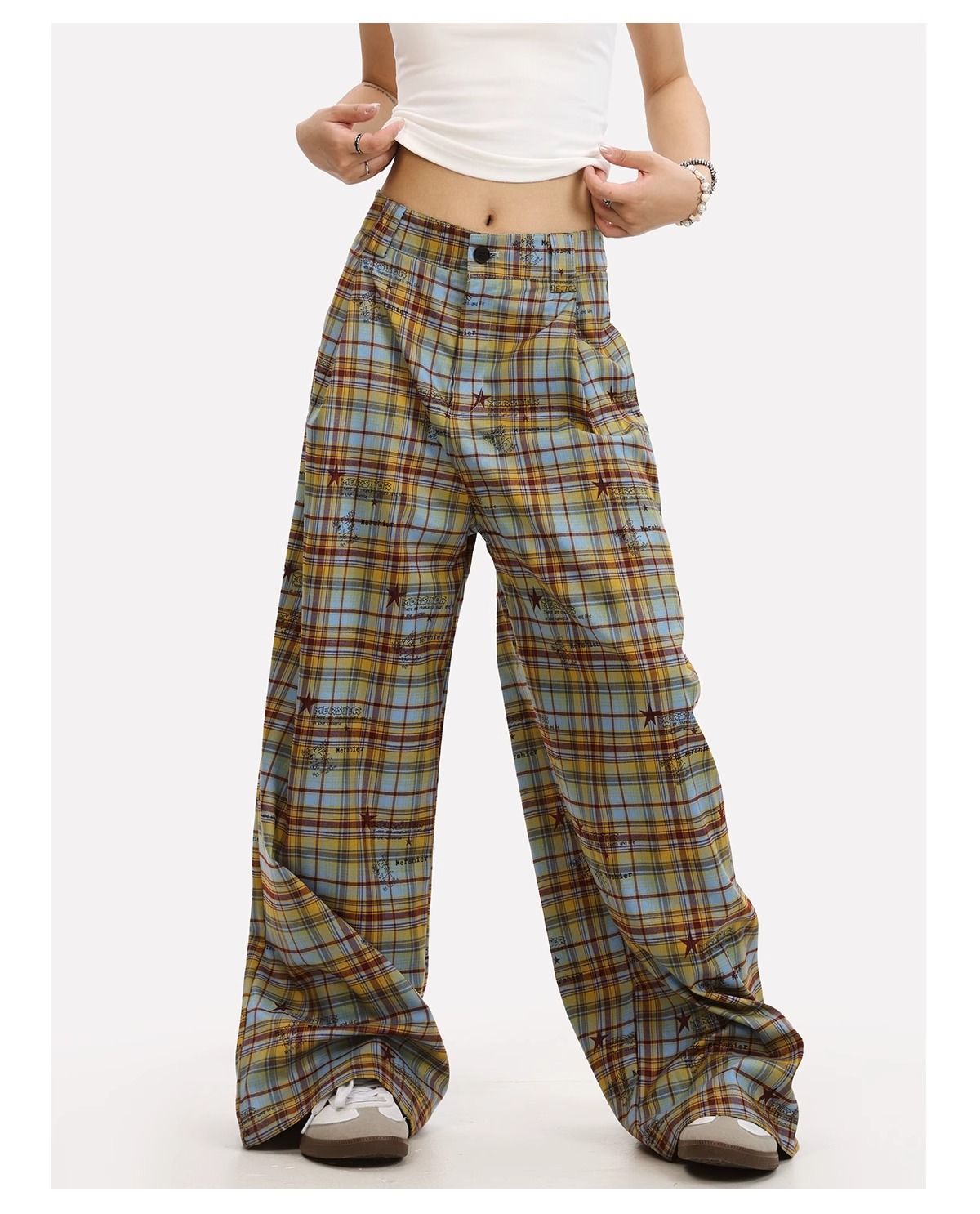 American Retro Striped Graffiti Wide-leg Casual Plaid Pants
