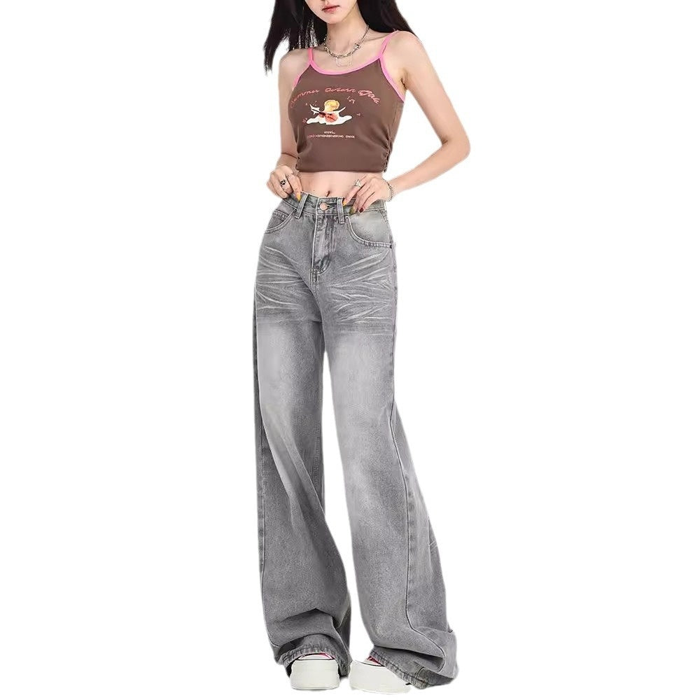Autumn Retro Loose Low Waist Straight Jeans For Women