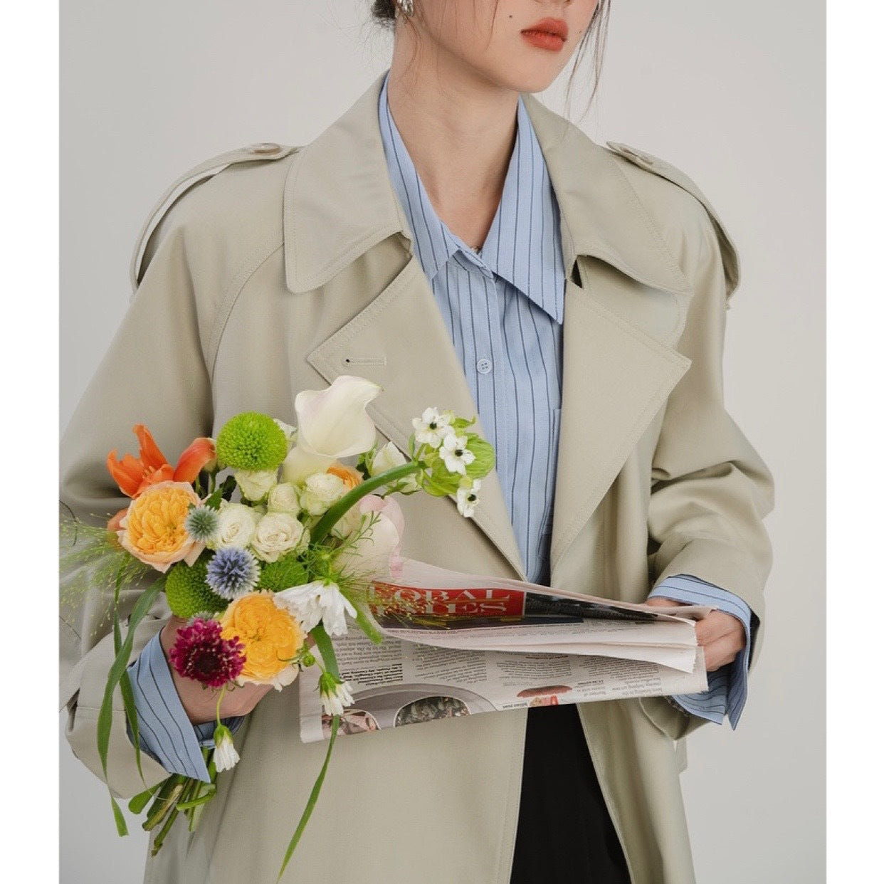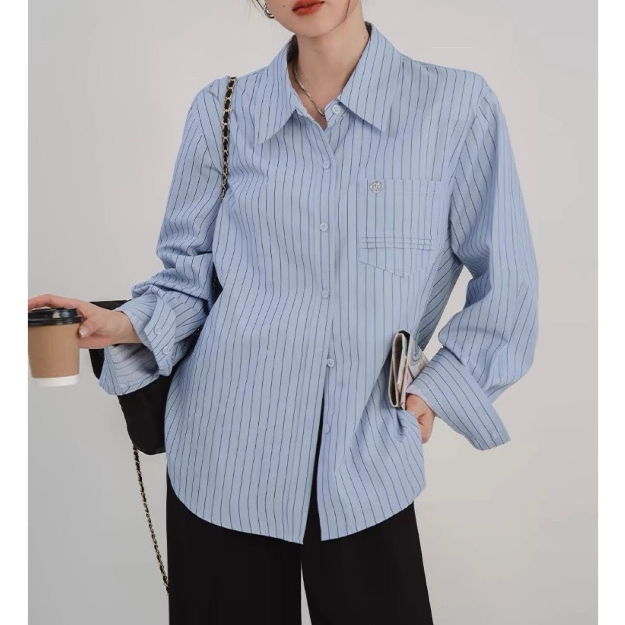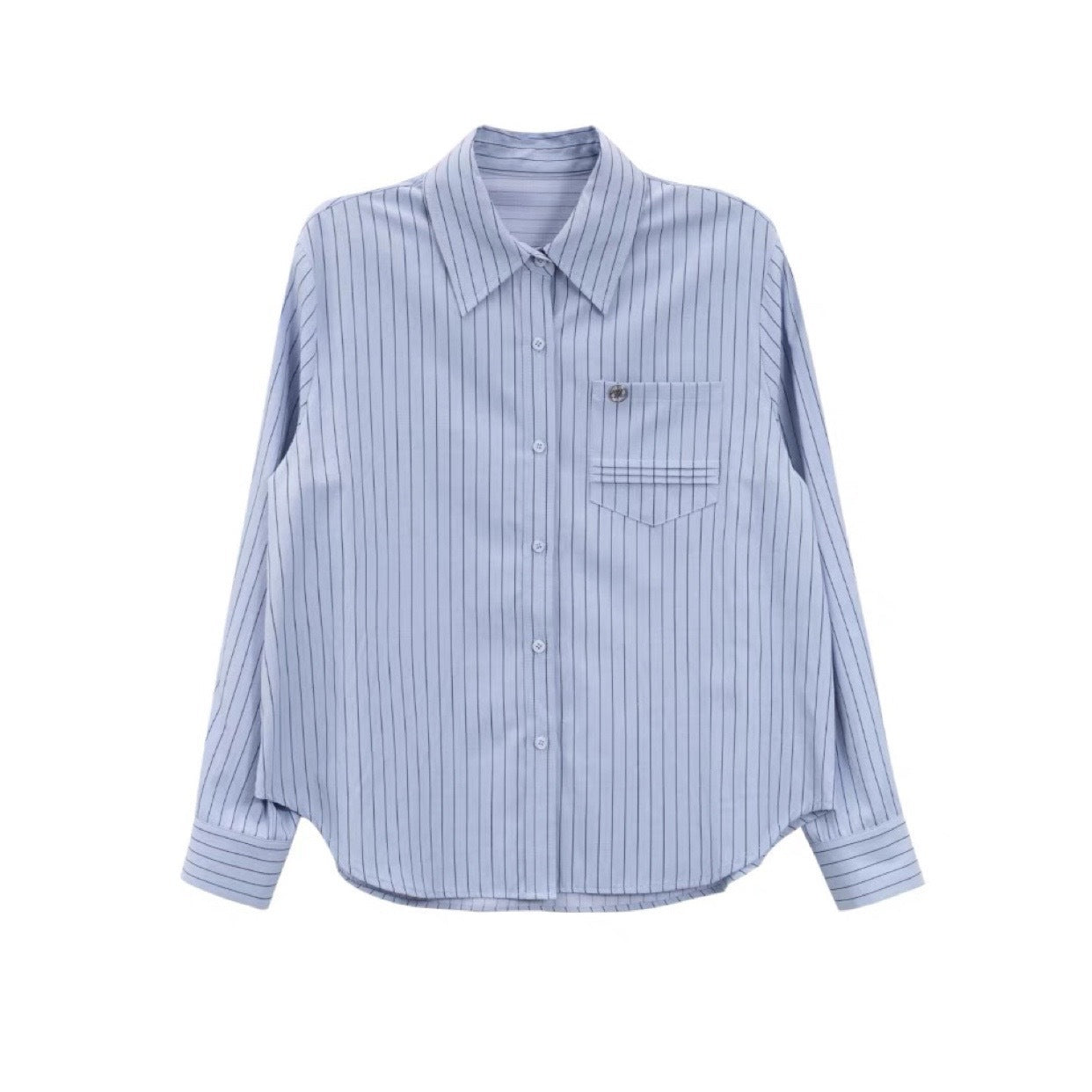 Blue Minimalist Preppy Women's Loose Slimming shirt