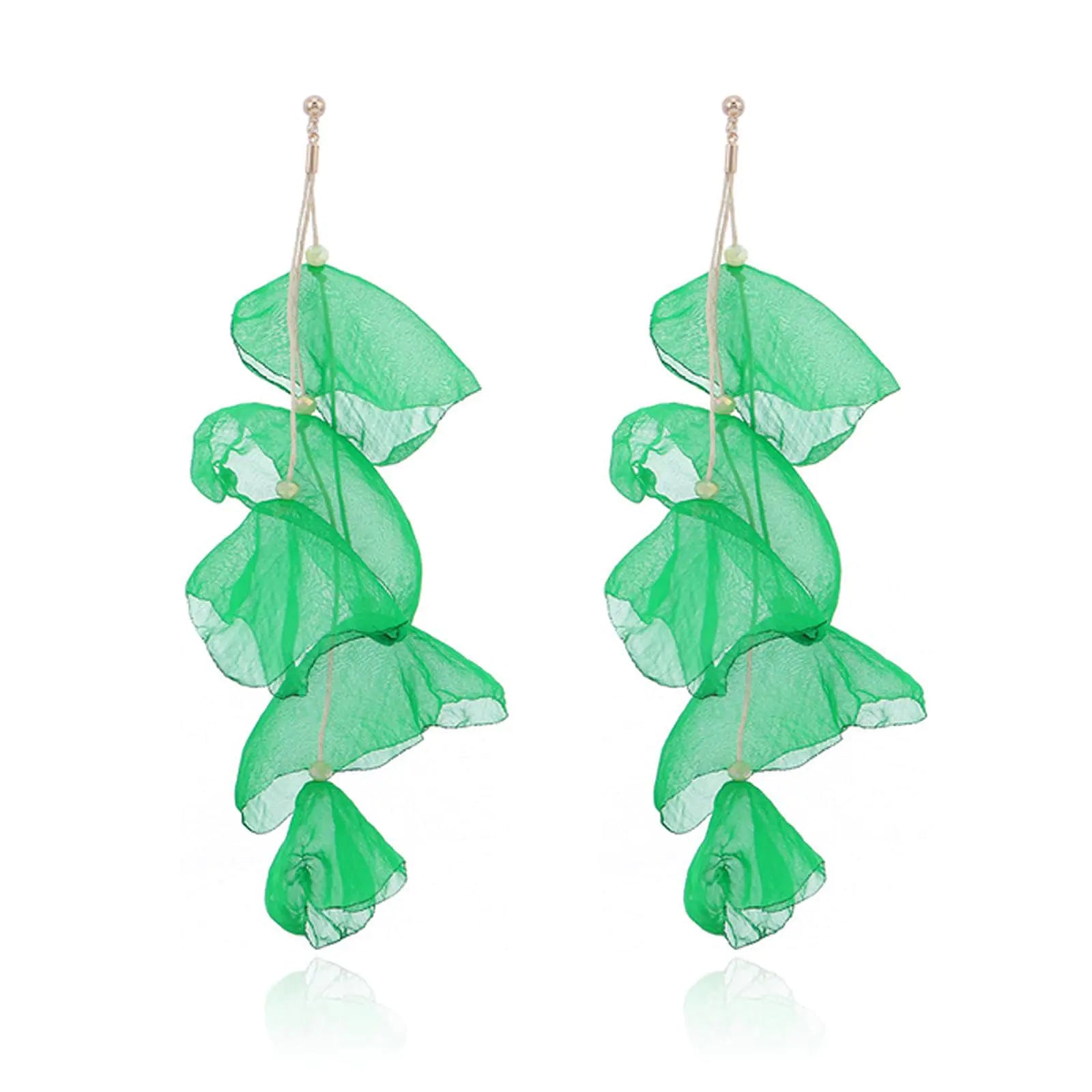 Floral Chiffon Earrings for Women. Tiered Flower Statement Long Drop Dangle Earrings, for Daily Dresses Holiday Party