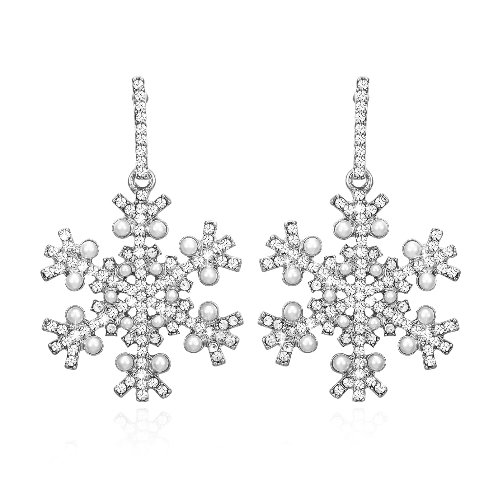 Hypoallergenic Bow Wreath Xmas Earrings. Santa Claus Dangle Earrings, Holiday Christmas Jewelry Gifts (Snowflake)