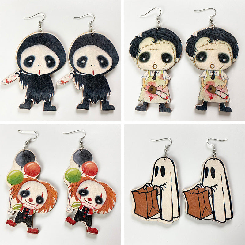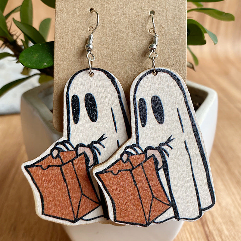 Halloween Horror Ghost Wood Earrings