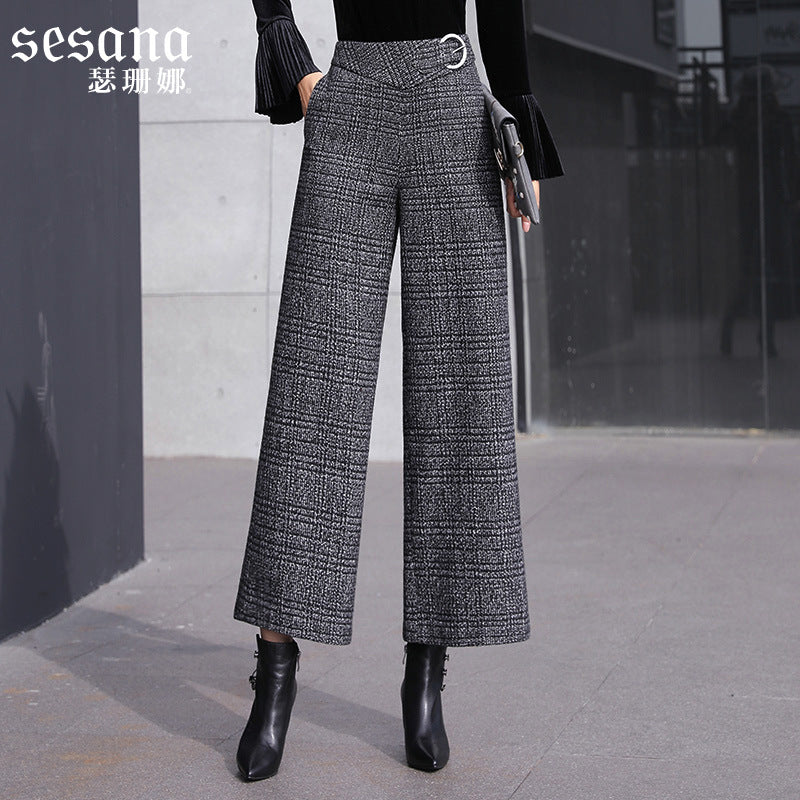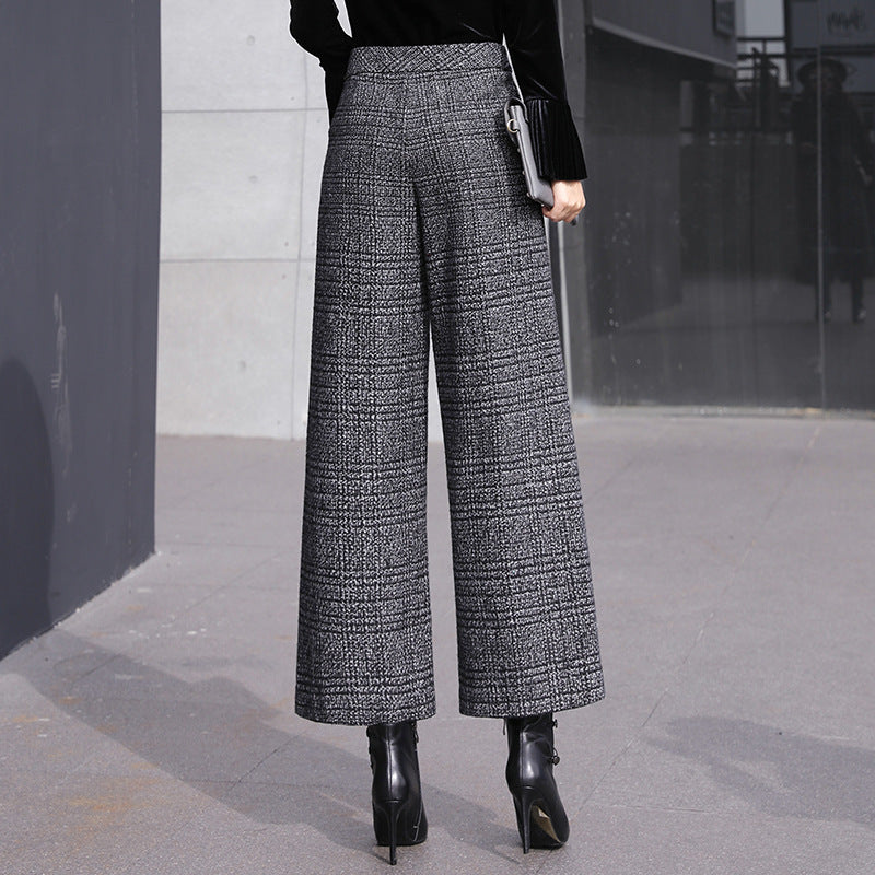 High Waist Coarse Flower Plaid Wide Leg Pants