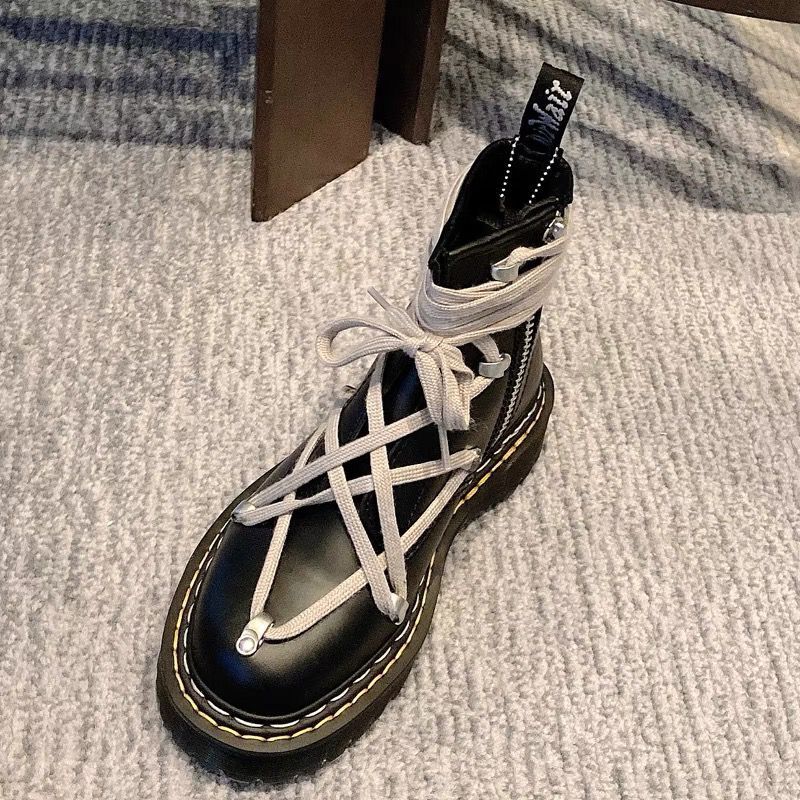 Pentagram Cross Straps Side Zipper Thick-soled Boots