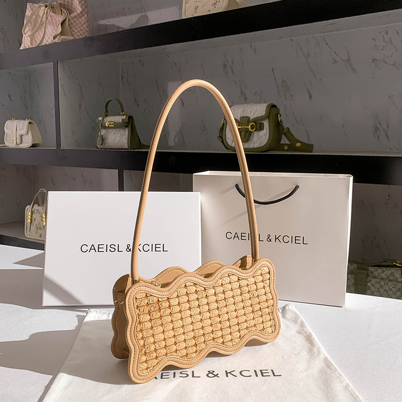Small Women's Woven One Shoulder Wave Pattern Handbag