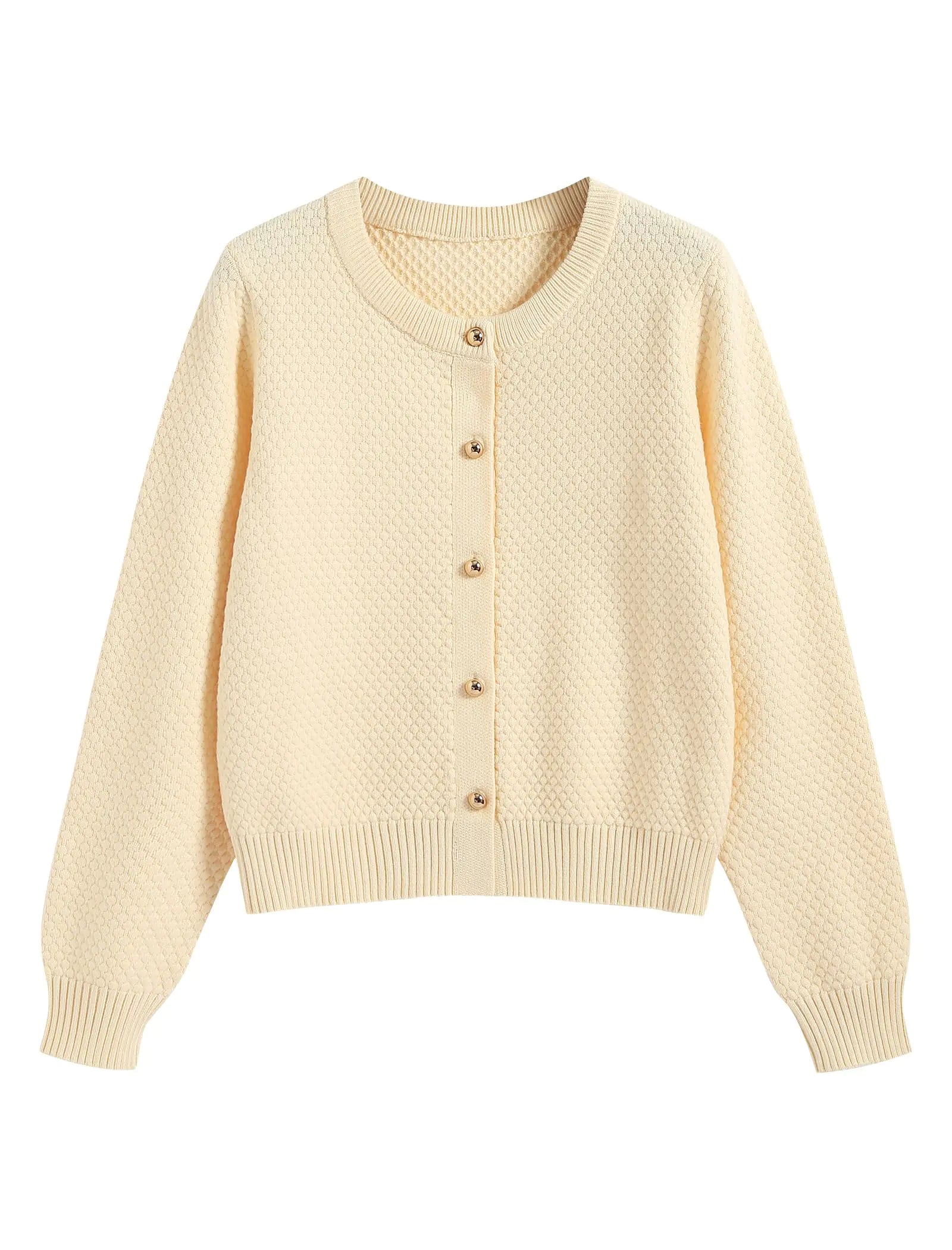 ["【Soft Material】Crafted from 100% polyester our womens button-down sweater cardigan offers a chunky and textured knit fabric thats incredibly soft and comfortable against your skin. The perfect blend of warmth and gentle stretch ensures a cozy fit that flatters most figures" 【Fashion Designs】Step up your style game with our trendy chunky knit cardigan. Designed with a long sleeve crew neck and ribbed cuffs and hem. The high-quality textured fabric and elegant metal buttons add a touch of sophistication to your everyday look perfect for elevating your elegance. "【Matching】Pair it with jeans dresses sweaters or undershirts for a chic and retro look thats both warm and stylish. This cardigan is the ultimate piece to add a sense of fashion to any outfit" "【Occasion】Whether youre dressing up for a wedding enjoying a vacation or heading to the office our crew neck cardigan is the perfect choice for any occasion. Its timeless design and strong sense of fashion ensure that youre always in style." 【Care & Details】hand washing with cold water. If opting for machine wash place it in a laundry bag with similar colors to protect the fabric. Avoid bleaching that preserves the quality and appearance of your garment.]
